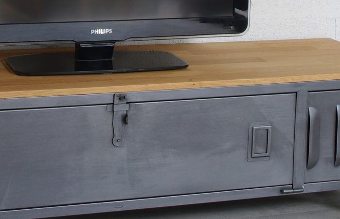 Meuble tv industriel 4 novembre 2016 sylvain Nous fabriquons sur-mesure votre meuble tv avec vestiaire industriel avec un ancien casier d’usine.
